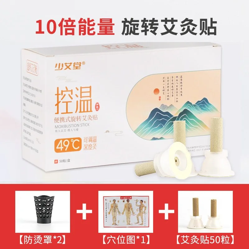 Each pack contains: 50 mini moxa sticks + 50 adhesive bases + 2 protective shields + 1 acupoints map